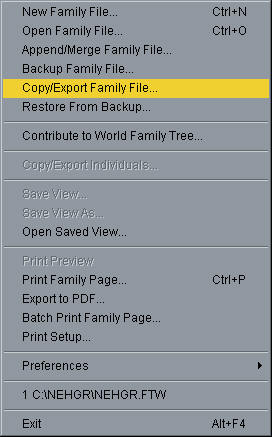 If you create a GEDCOM file with your genealogy software and add this file to your Personal Page at Family Tree DNA you can allow people who match you to see the names of your ancestors. This will help them decide how they're related to you. You can also attach a GEDCOM file to your Ysearch entry so that other people can see your pedigree chart. If you submitted a DNA sample to the Sorenson Molecular Genealogy Foundation, you may also want to update the pedigree information you submitted. If you decide to change your genealogy software in the future, you don't need to retype all of your information into the new program. Simply export a GEDCOM file from your old genealogy program and import it into your new one. Furthermore, because you want to preserve your genealogy, you should create additional copies of your genealogical records and send these copies to family members, to databases such as Ancestry.com’s World Family Tree, the Pedigree Resource File at FamilySearch.org, and to other online websites. You can do all of these with a GEDCOM file. No matter what computer program is used by online databases or by your friends and relatives, you can create a GEDCOM file that almost every genealogy program can read. Now let’s create one!